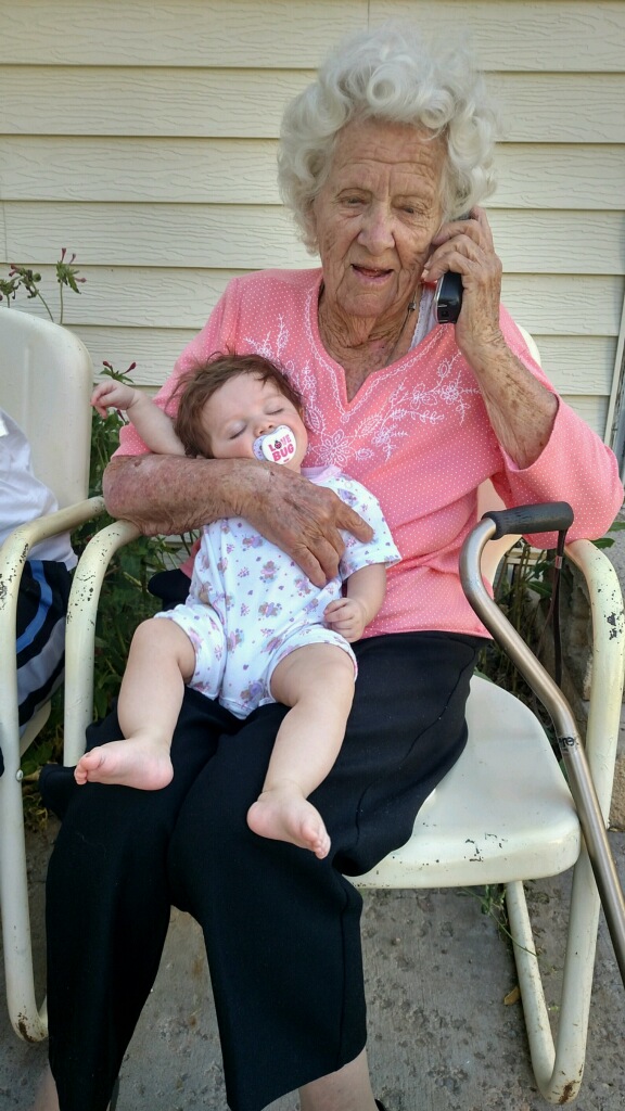 We spent many evenings over at Great Grandma Marjorie's on her back porch. She just loves to hold Hazyn.